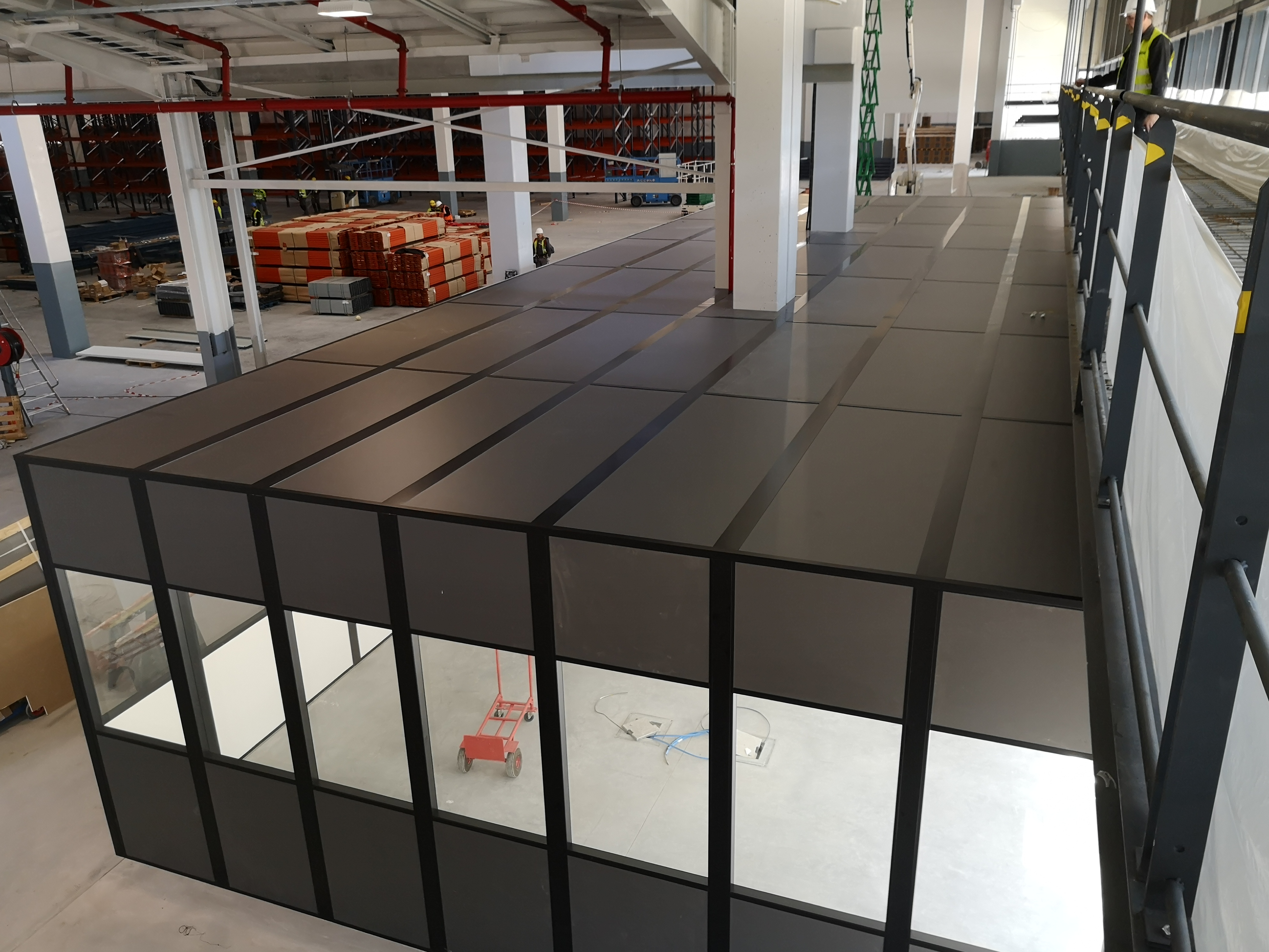 Création de bureaux et locaux sociaux en milieu industriel, spacing box autoportante avec intégration des différents flux (clim,CVC,électricité, Sprinkler)